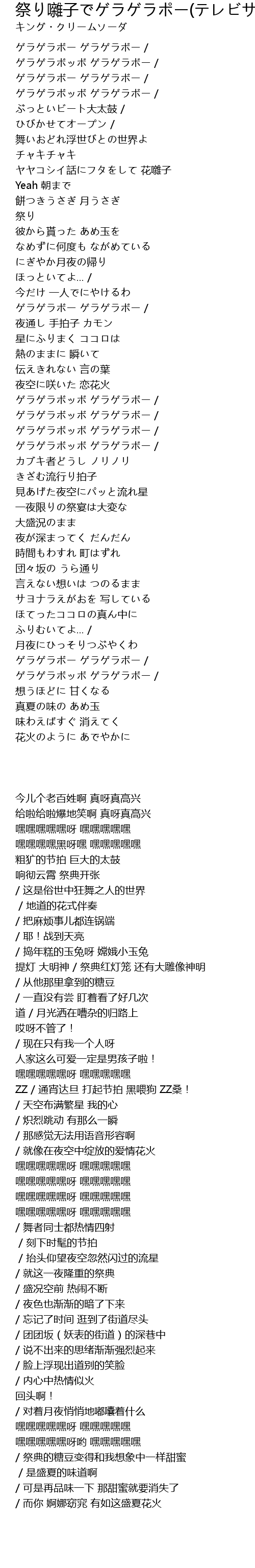 | 歌曲 | 祭り囃子でゲラゲラポー(テレビサイズ フル) |