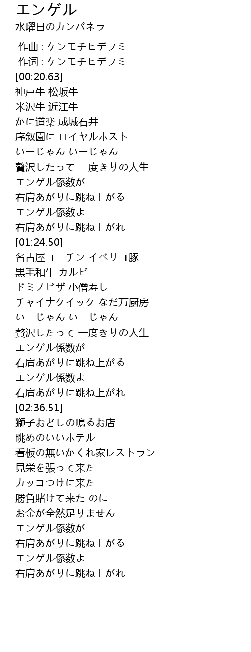 | [02:22.46] | エンゲル係数よ |