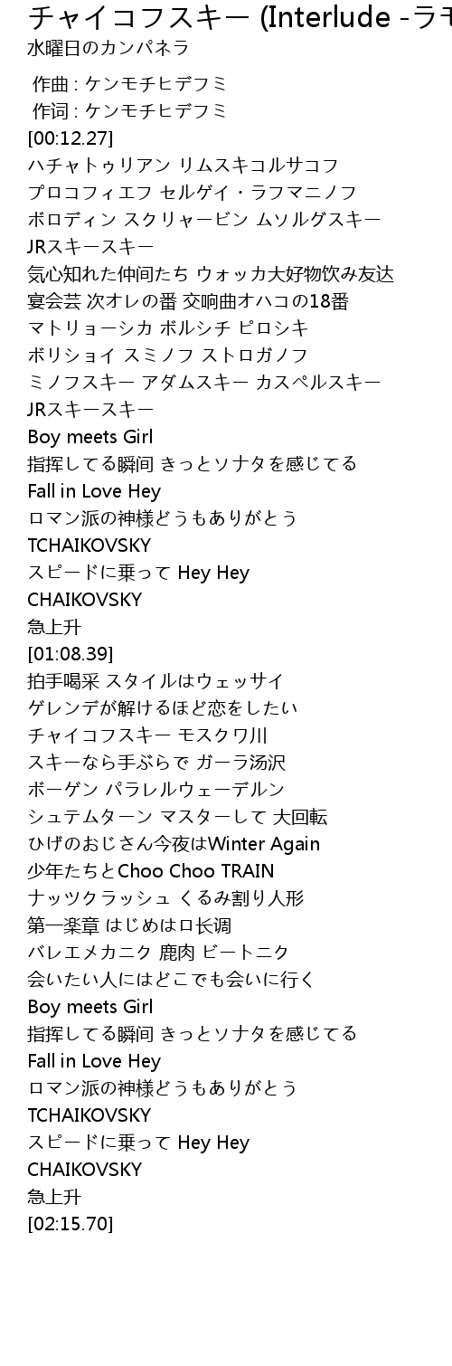| 歌曲 | チャイコフスキー (Interlude -ラモス-) |