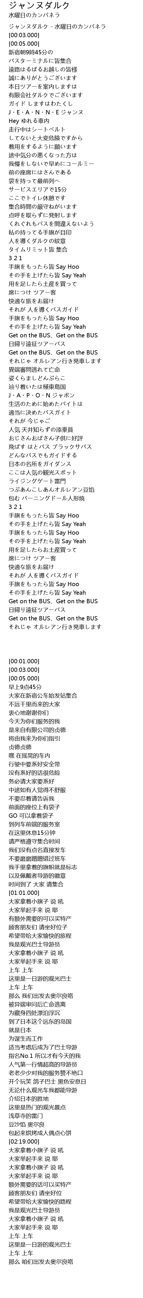 | [03:02.000] | Get on the BUS、Get on the BUS |