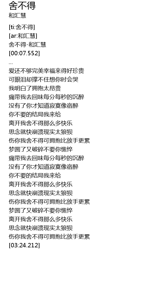 | [00:00.702] | 舍不得-和汇慧 |
