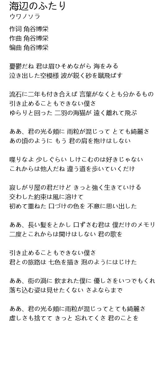 | 憂鬱だね 君は眉ひそめながら 海をみる | |