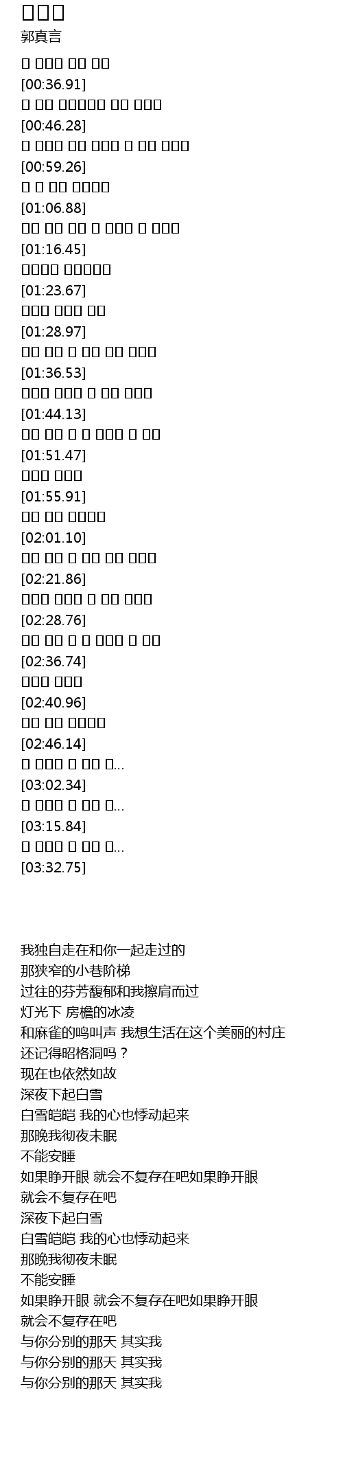 | [01:38.51] | 白雪皑皑 我的心也悸动起来 |