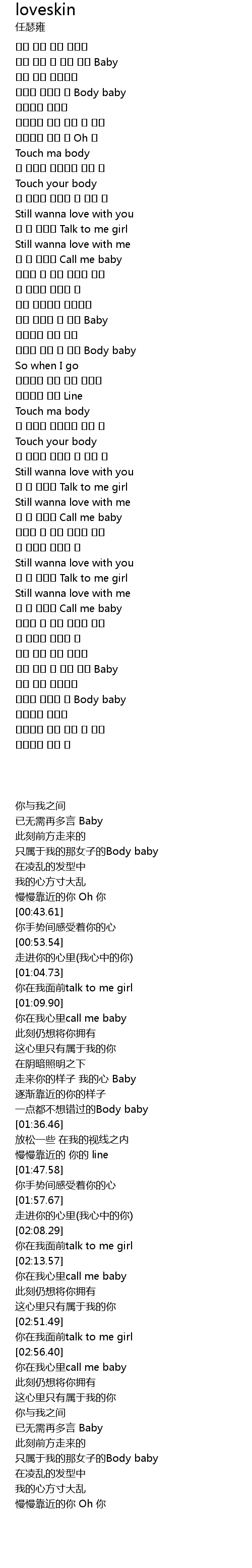| [03:20.10] | 나만의 그녀의 그 Body baby |