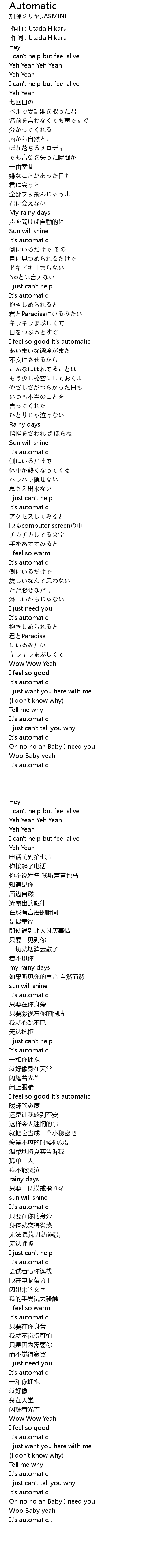 | [00:01.00] | 作词 : Utada Hikaru |