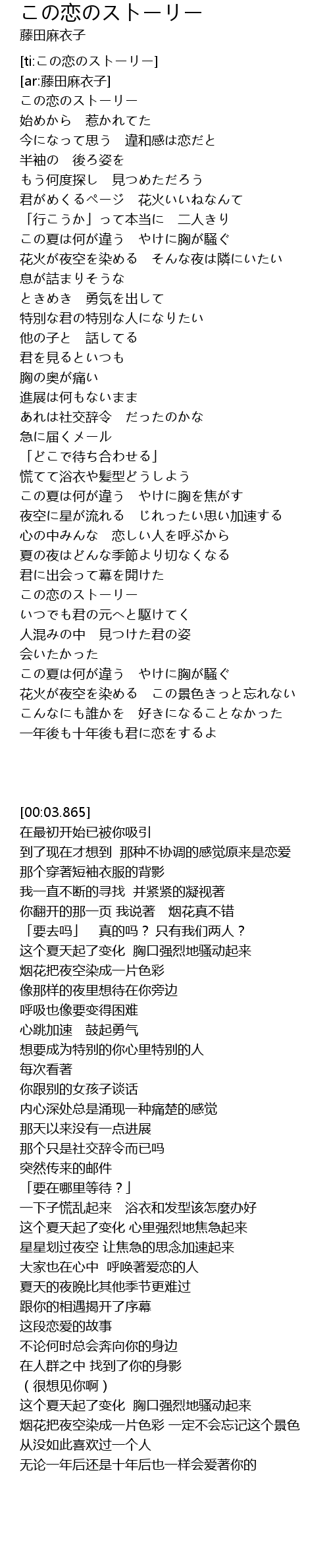 | [01:04.367] | 君がめくるページ 花火いいねなんて |