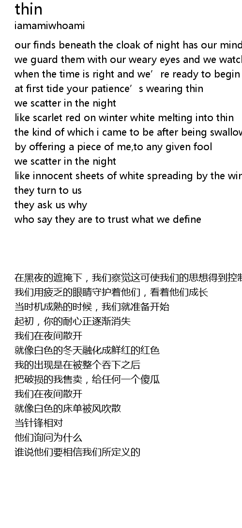 | [01:28.00] | like scarlet red on winter white melting into thin |