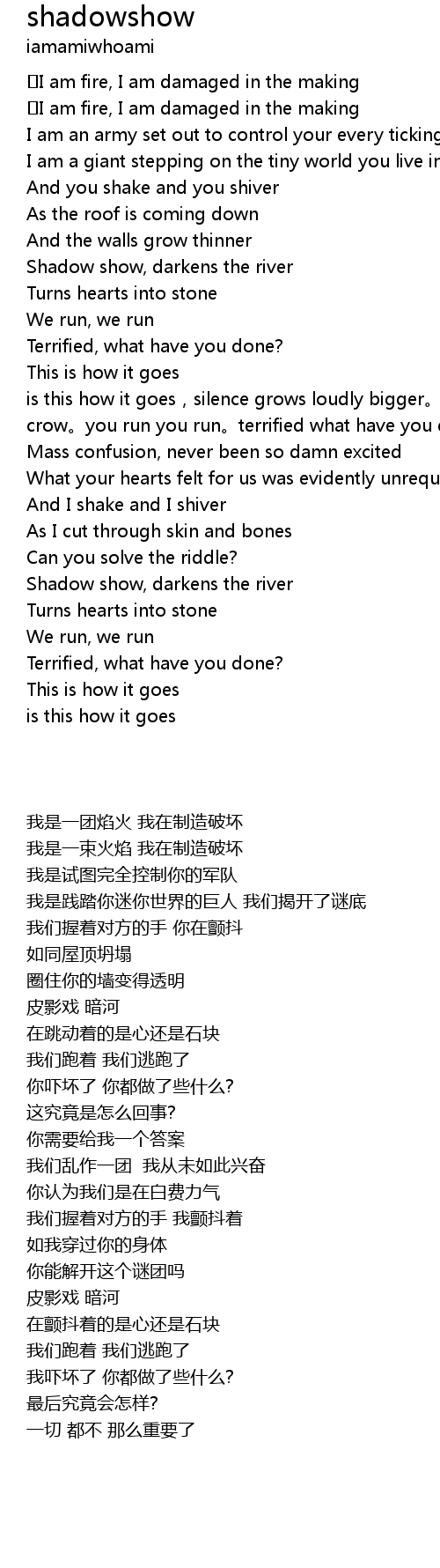 | [00:38.54] | 我是一束火焰 我在制造破坏 |