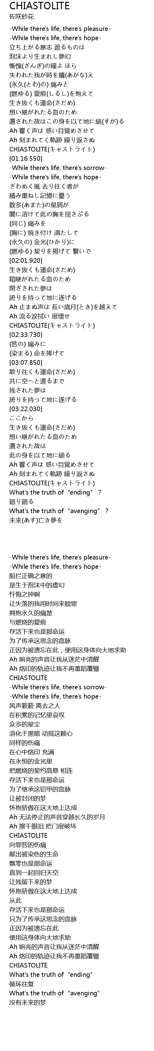| [03:50.750] | CHIASTOLITE(キャストライト) |