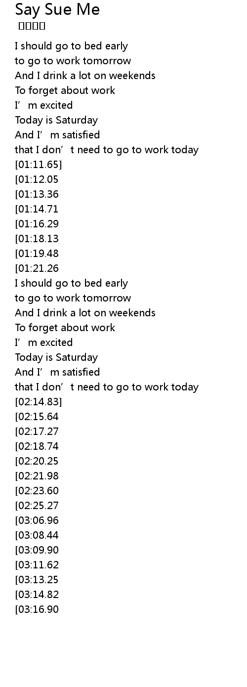 | [01:06.92] | that I don' t need to go to work today |