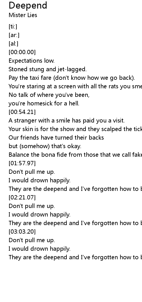 They are the deepend and I've forgotten how to breathe. |