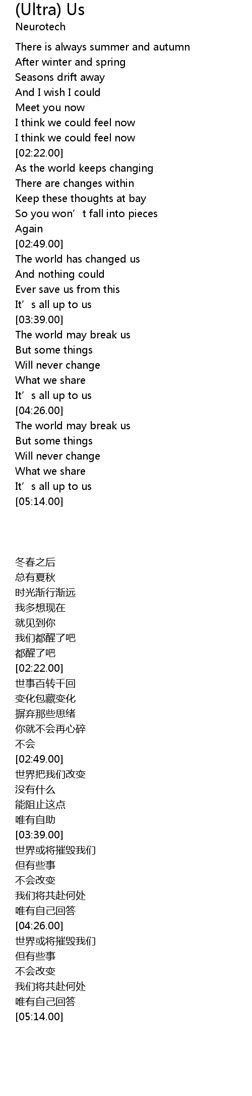 | [03:32.00] | It’s all up to us |