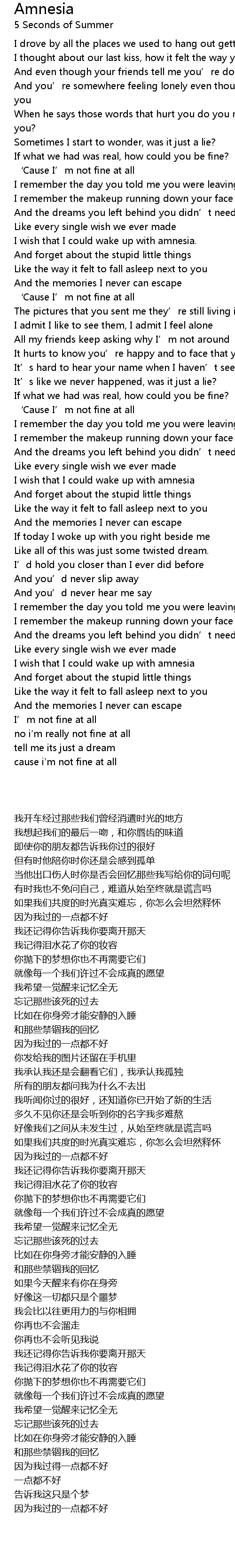 | [00:56.20] | I wish that I could wake up with amnesia. |