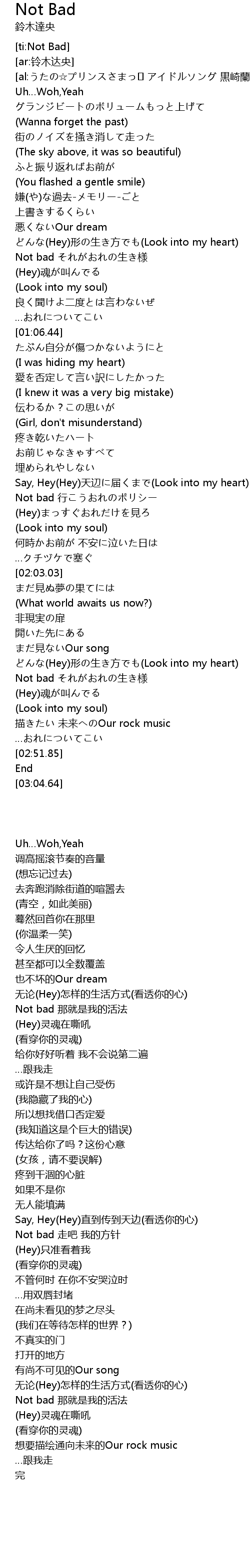 | [01:46.41] | Not bad 走吧 我的方针 |