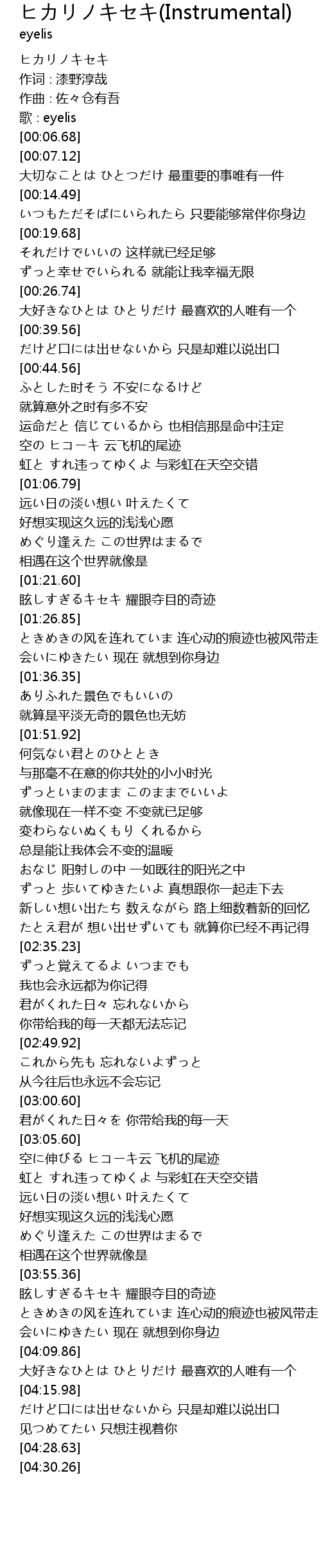 | [03:56.54] | 眩しすぎるキセキ 耀眼夺目的奇迹 |