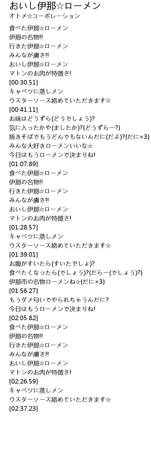 | [01:51.77] | 伊那市の名物ローメンね☆{だに×3} |