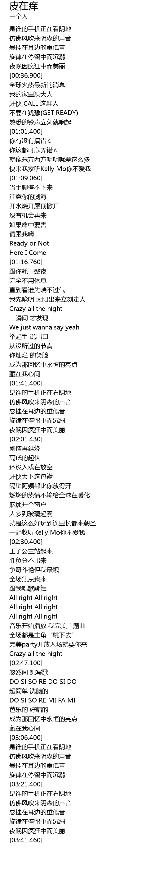 | [02:43.400] | wán měi party kāi fàng rù chǎng jiù yào nǐ lái |
