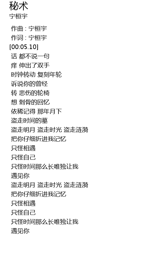 | [00:01.00] | 作词 : 宁桓宇 |