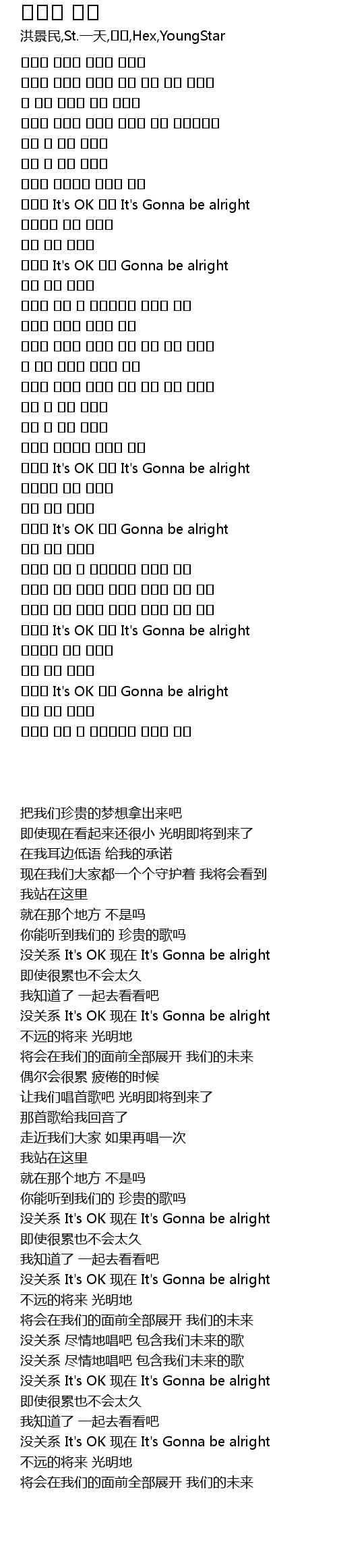 | [03:01.37] | 괜찮아 It's OK 이젠 It's Gonna be alright |