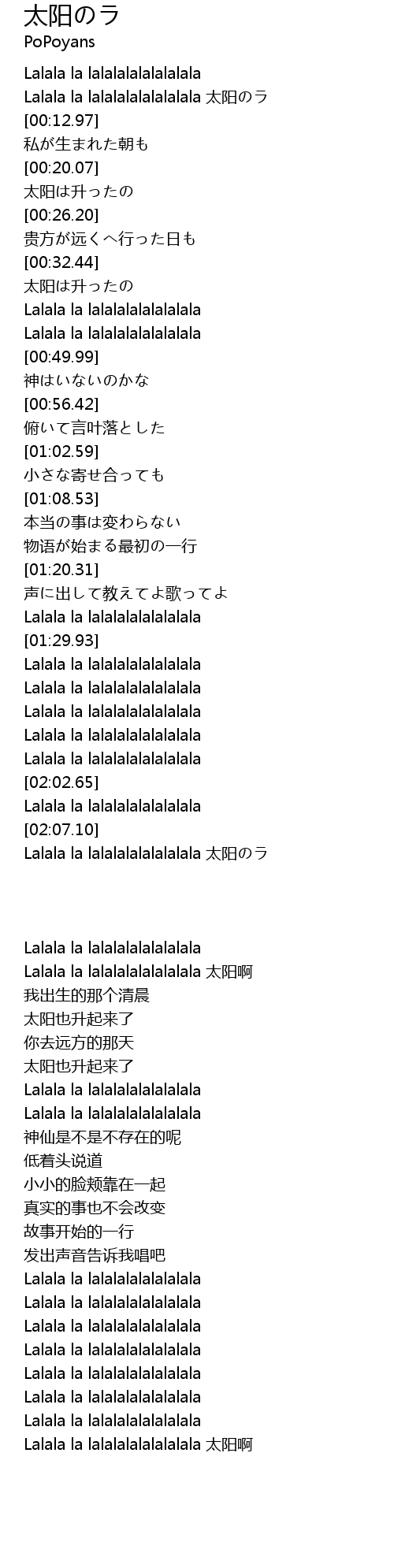 | [02:34.65] | Lalala la lalalalalalalalala 太阳のラ |