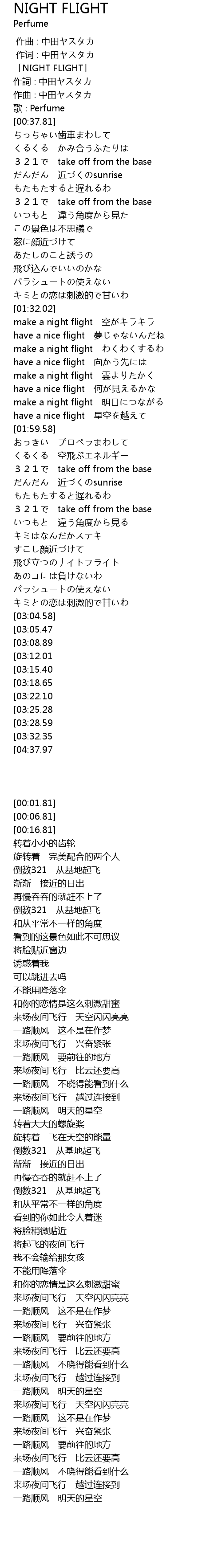 | [04:11.64][03:12.01] | make a night flight わくわくするわ |