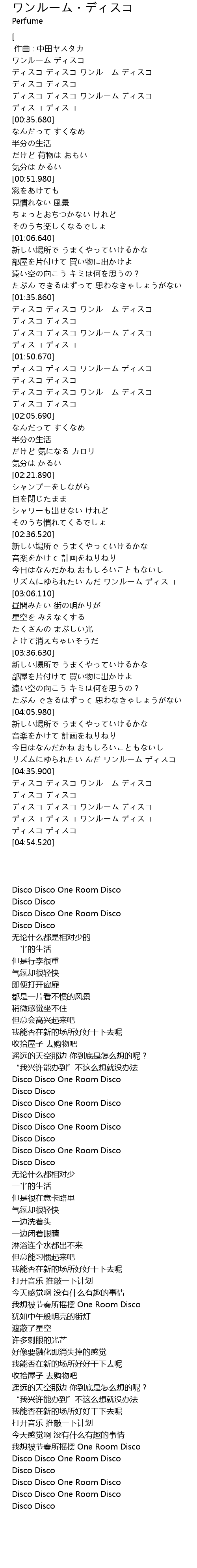 | [00:29.950] | ディスコ ディスコ ワンルーム ディスコ |