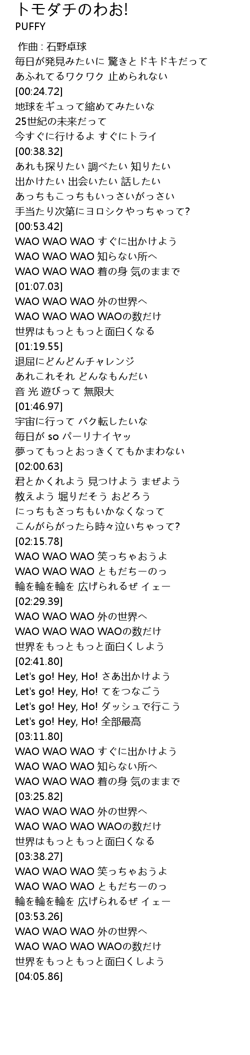 | [03:44.57] | WAO WAO WAO ともだちーのっ |