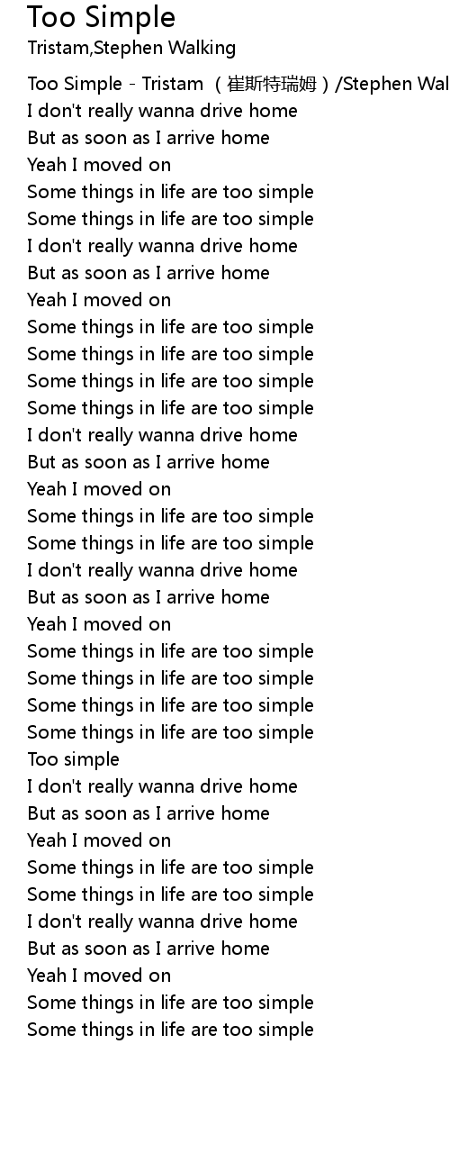 | [00:00.685] | Too Simple Tristam cui si te rui mu Stephen Walking |