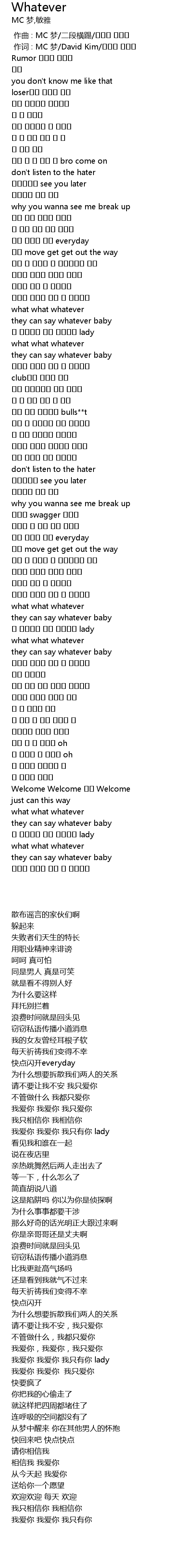 | [00:01.00] | zuò cí : MC mèng David Kim |