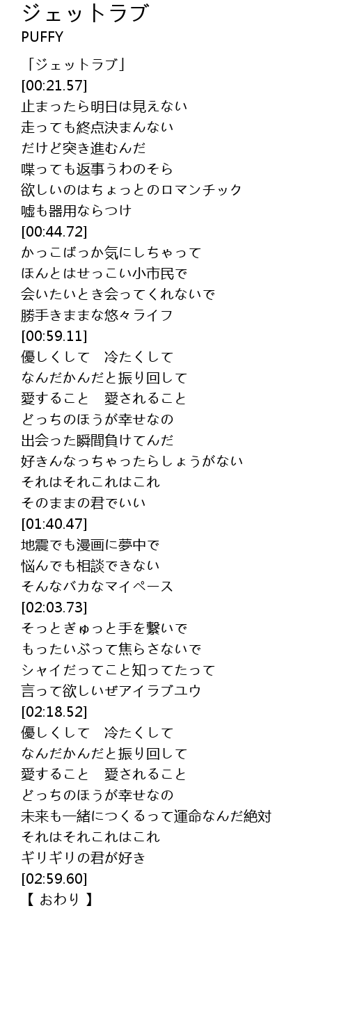 | [00:01.57] | 「ジェットラブ」 |