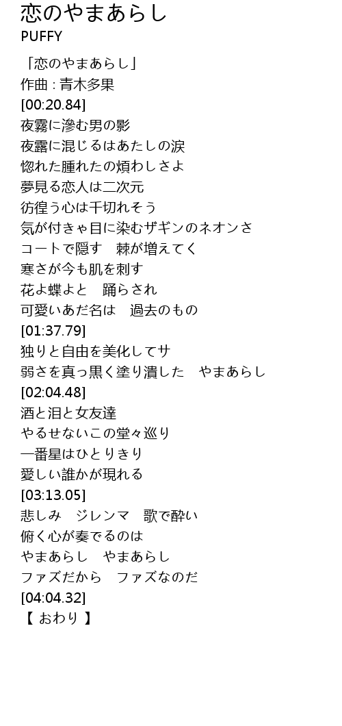 | [00:29.62] | 夜露に混じるはあたしの涙 |