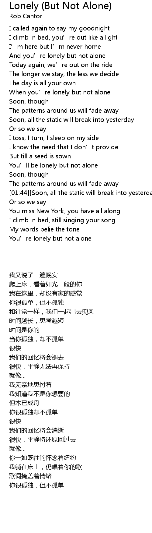 | 歌曲 | Lonely (But Not Alone) |