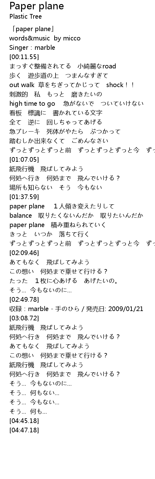 | [01:41.78] | paper plane 1人傾き変えたりして |