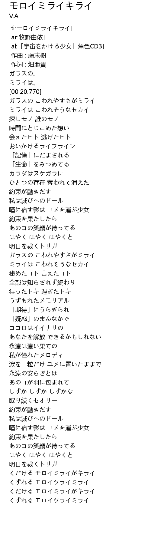 | [01:57.030] | ミライは こわれそうなセカイ |