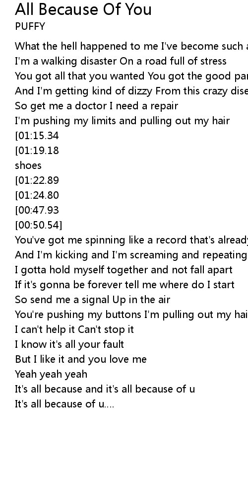 | [00:30.01][01:15.34] | And it' s all because of u |