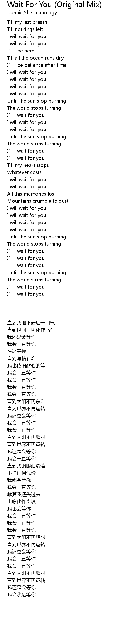 | 歌曲 | Wait For You (Original Mix) |