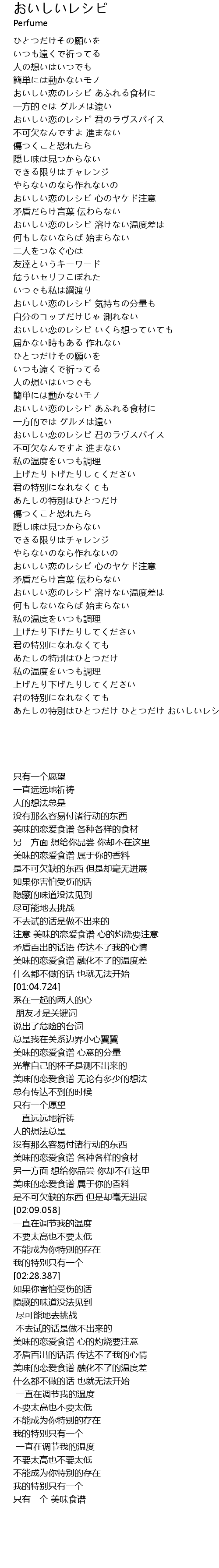 | [01:36.504] | 美味的恋爱食谱 无论有多少的想法 |