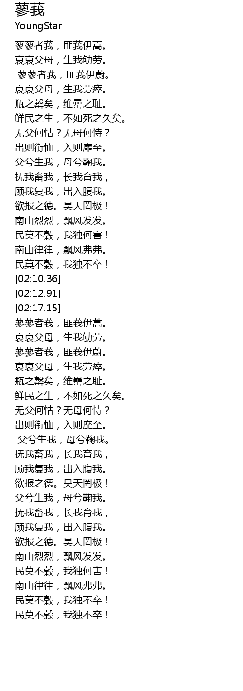| [02:27.16] | 蓼蓼者莪,匪莪伊蒿。 |