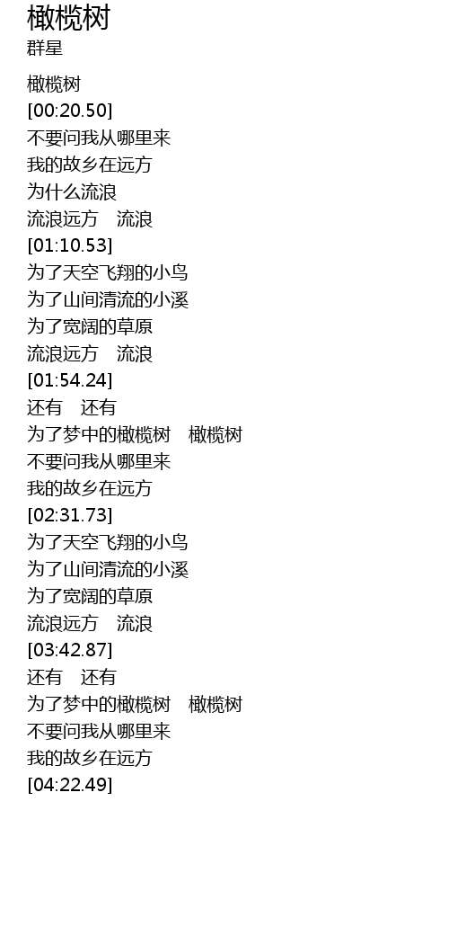 | [03:57.33] | 为了梦中的橄榄树 橄榄树 |