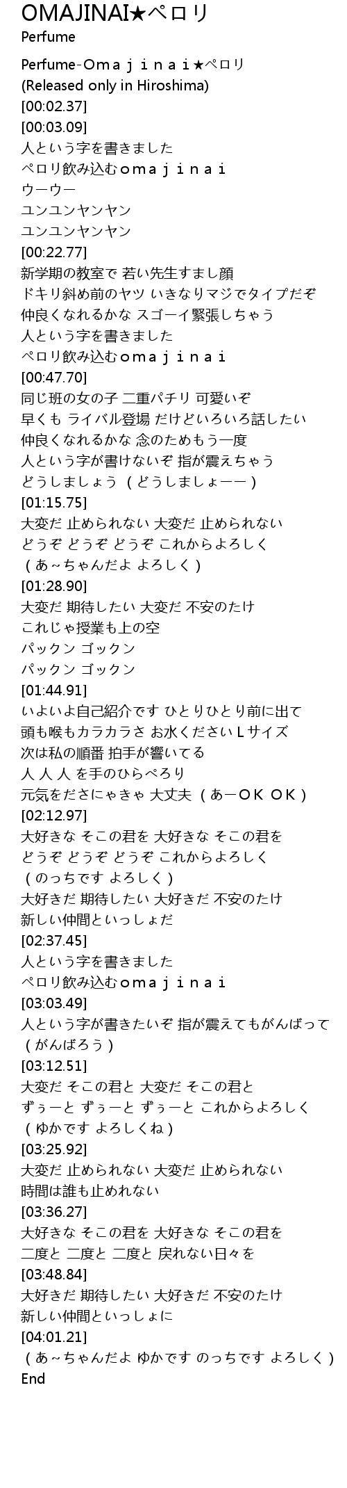 | [00:00.76] | Perfume-Omajinai★ペロリ |