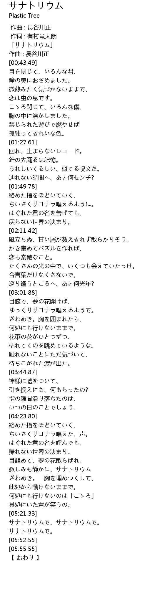 | [04:54.00] | 愁しみも静かに、サナトリウム |
