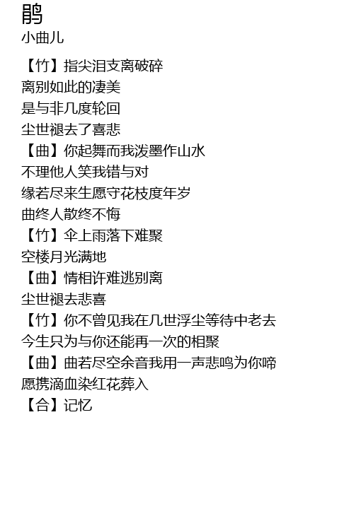 | [01:56.582] | qū qíng xiāng xǔ nán táo bié lí |