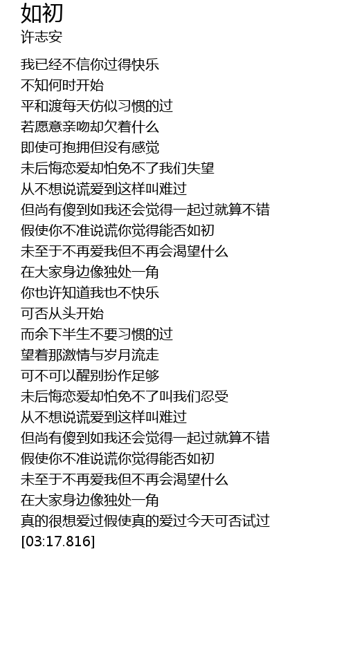 | [02:41.714] | 假使你不准说谎你觉得能否如初 |