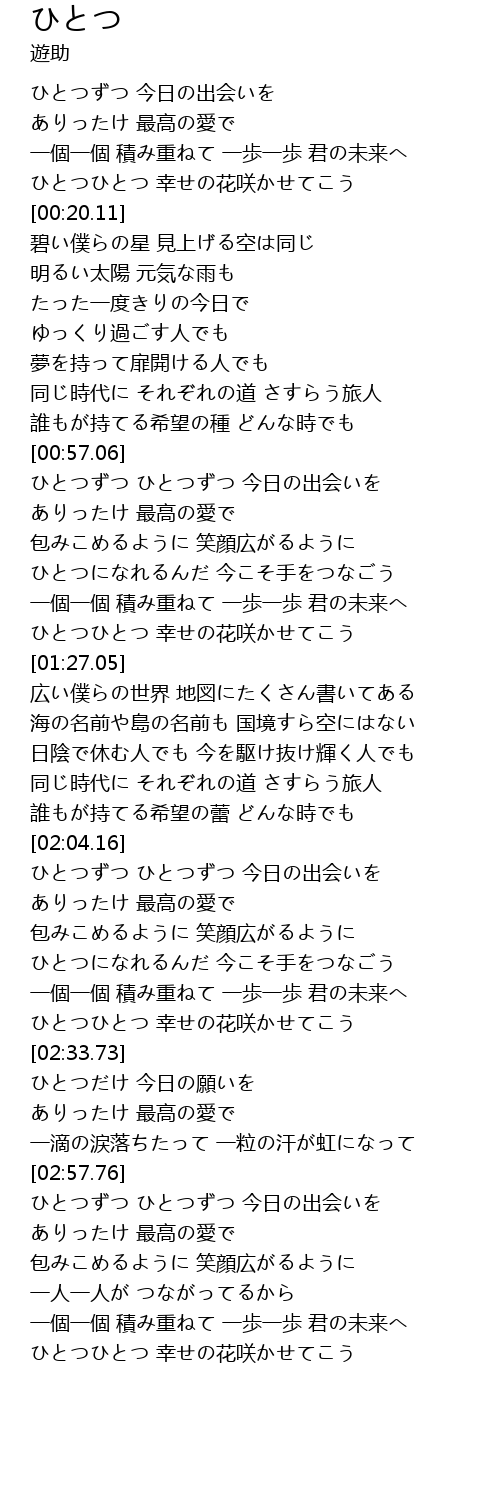 | [00:03.41] | ひとつずつ 今日の出会いを |