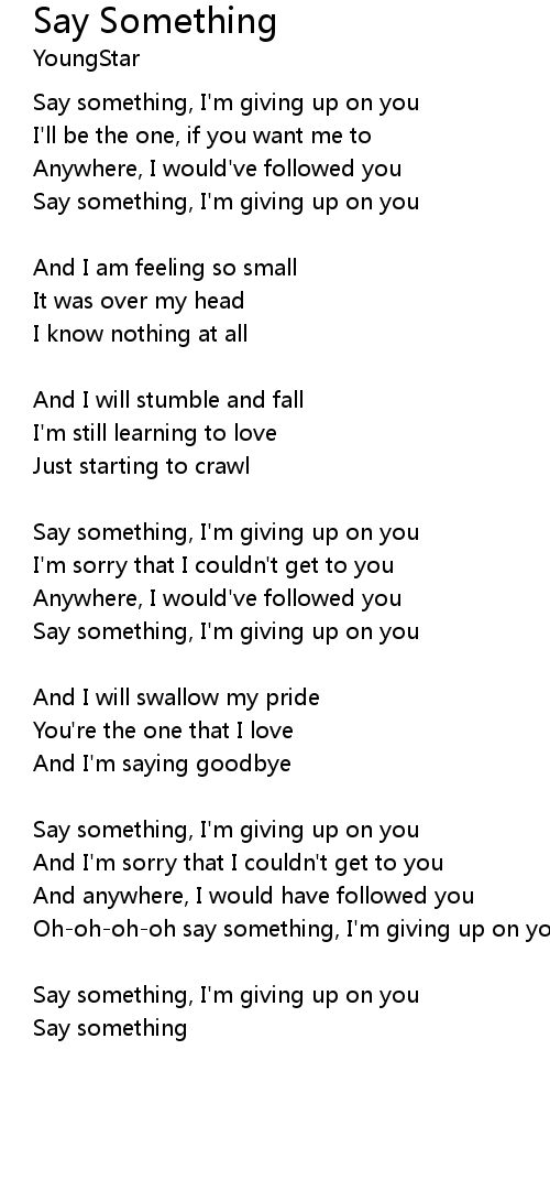 Oh-oh-oh-oh say something, I'm giving up on you