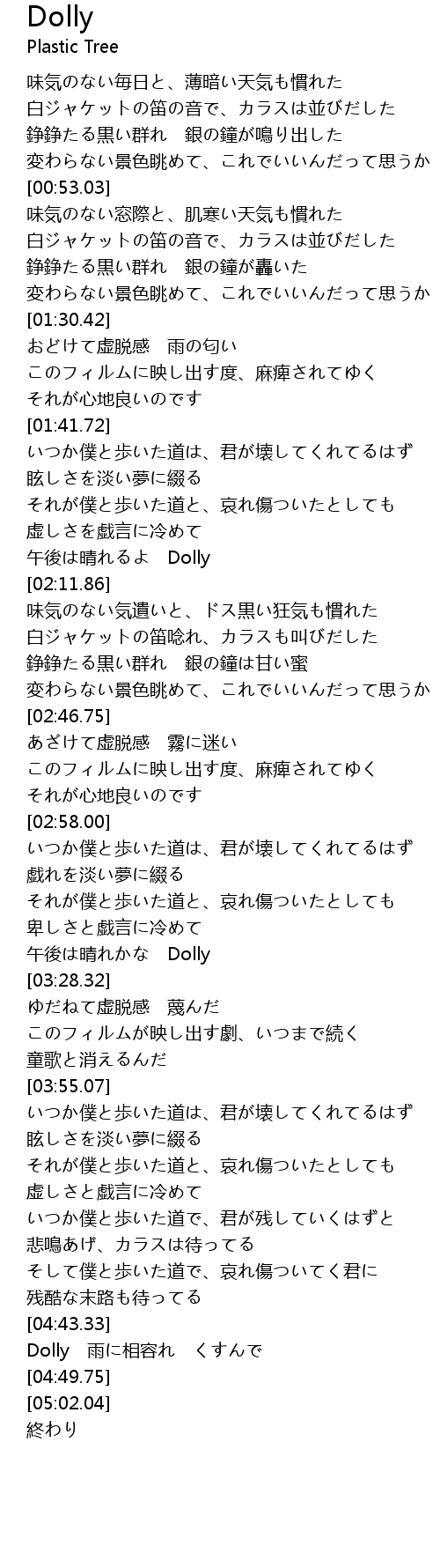 | [02:06.53] | 午後は晴れるよ Dolly |