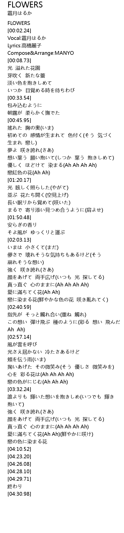 | [03:57.34] | 愛に滿ちてく花(Ah Ah)(鮮やかに咲け) |