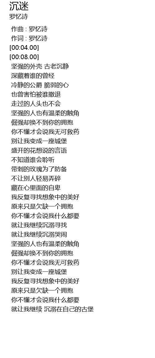 | [00:01.00] | 作词 : 罗忆诗 |