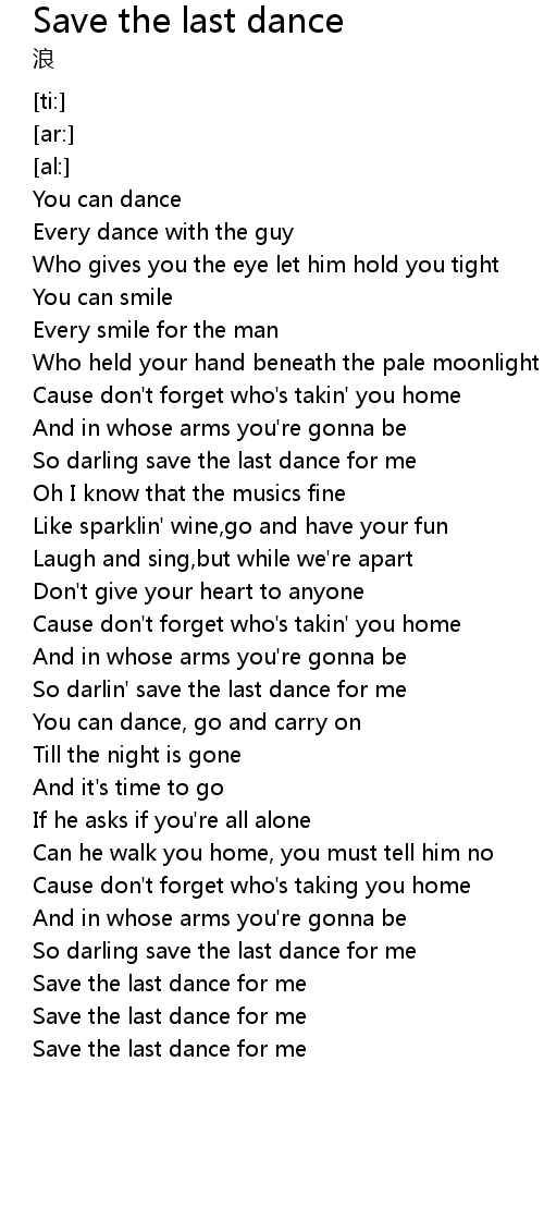 | [02:18.22] | Save the last dance for me |
