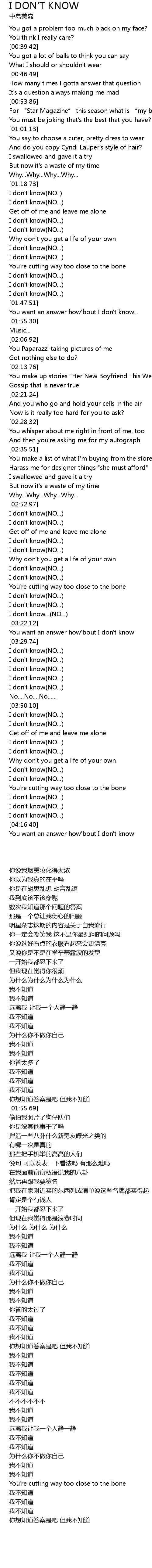| [03:34.24] | I don't know(NO...) |
